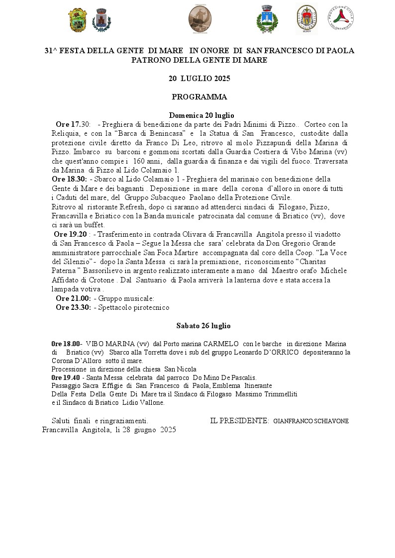 Comitato festa Francavilla Angitola (VV) 9 e 10 agosto 2025