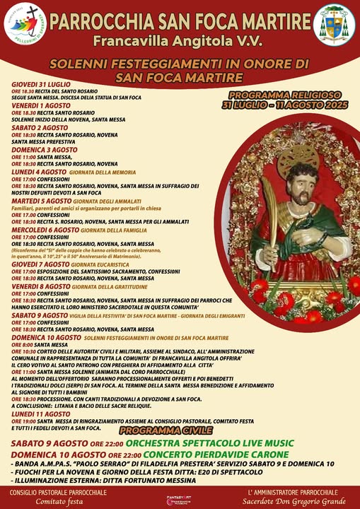 Festeggiamenti in onore di San Foca Martire 09 agosto 2025 ore 22.00