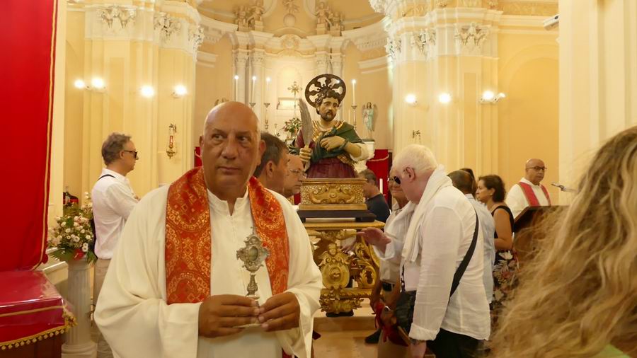 Quando c’era la festa di San Foca, essa iniziava dal momento in cui la statua veniva spostata dalla nicchia al baldacchino, per la venerazione durante il novenario.