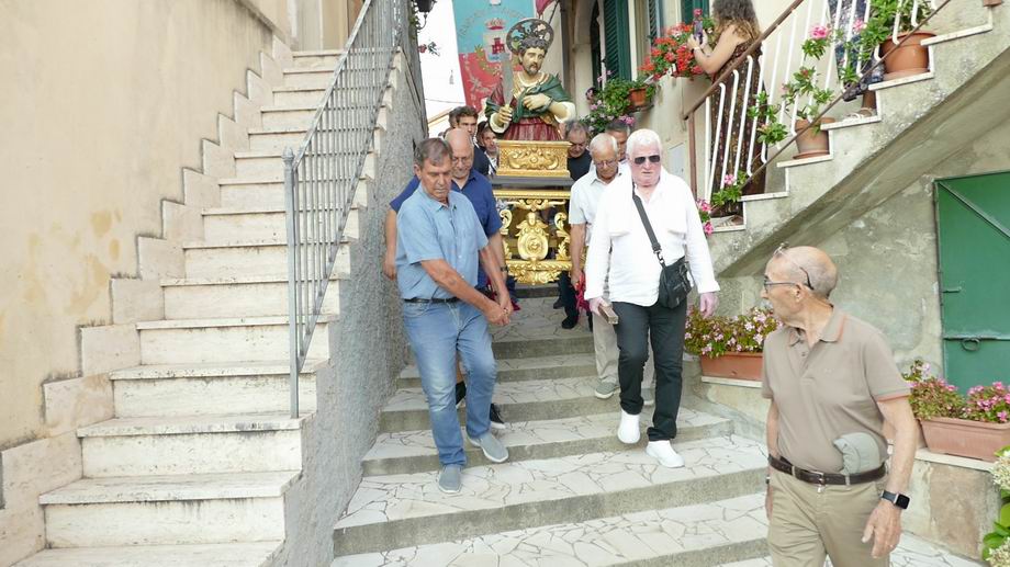Quando si mettevano le mani sulla statua, per prenderla e portarla giù, le campane suonavano a festa. Il parroco, i chierichetti e i fedeli, erano pronti a cantate il responsorio a San Foca e ad offrirgli l’incenso. Nel frattempo, nella zona chiamata “Costera”, c’era il fuochista, pronto a sparare fuochi d’artificio.