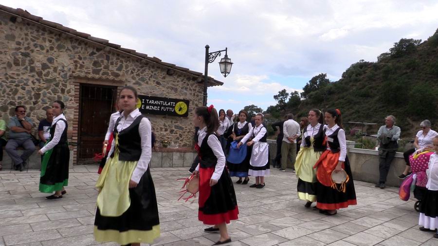 A' mmiènzu sa càsa vìju na carpìta sa figghjia mu la vìju rìcca e zìta. A' mmienzu sa casa viju nu palùmbu ca nc’è l’uòru de tùttu lu mùndu. A' mmienzu sa casa viju na sfèra, crìju ca l’amìcu è chi si lèva. Lèvati chjiànu chjiànu pe nòmmu càdi. Lèvati chjiànu chjiànu pe nommu càdi. Cacciàtinci li sièggi da li pèda, crìju ca lu tizzùni è de ficàra.