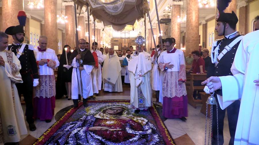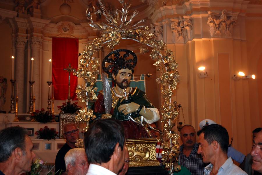 Dopo la Santa Messa per le vie del paese si è svolta la processione affollata da numerosi fedeli. A conclusione della processione sul sagrato della chiesa la banda musicale ha intonato la litania; infine si è proceduto al bacio della reliquia del Santo.