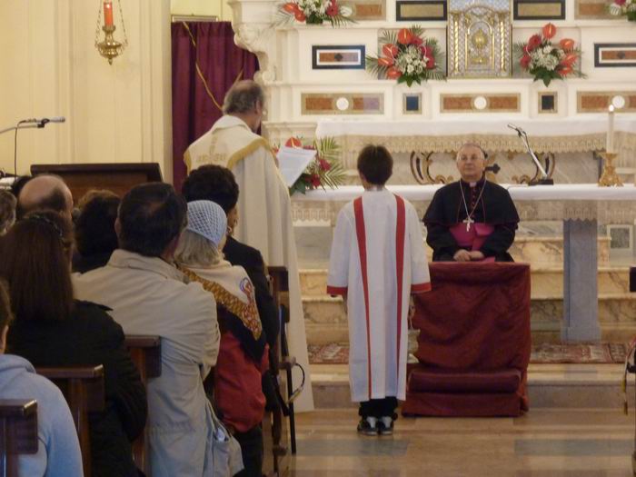 della santa messa con la recita del santo rosario, I percorsi formativi, in particolare quelli per l’Iniziazione Cristiana, sono ordinari e finalizzati alla ricezione dei sacramenti. La catechesi è indirizzata ai più piccoli come ai più grandi e segue i testi della CEI integrati da vari sussidi LDC e Paoline a seconda delle tematiche. Il parroco è presente alle catechesi alternandosi nelle varie classi e curando personalmente quella degli adulti. Spesso si ha difficoltà a formare le classi, a causa soprattutto del travaso in altre parrocchie di cui abbiamo parlato. Stiamo tentando l’esperienza del Cammino Neocatecumenale anche se siamo ancora alle prime fasi, dopo aver fatto una missione cittadina in piazza, animata appunto dai catechisti del Cammino Neocatecumenale ed accolta con entusiasmo. Attualmente stiamo ospitando le catechesi per la seconda volta. Il desiderio è comunque quello di passare da una pastorale di “mantenimento” ad una pastorale di tipo missionario che rappresenta una delle sfide di questo nostro tempo e con cui dobbiamo misurarci. Da quest’anno ci impegneremo a seguire, nei limiti della disponibilità di tempo e di persone, i “cammini catecumenali” proposti e sperimentati dalla Diocesi. Comunque gli adulti per l’anno sociale trascorso, hanno ricevuto settimanalmente una catechesi ordinaria sulla falsariga della Lettera Pastorale sulla fede. Sul territorio di Francavilla purtroppo abbiamo la presenza dei Testimoni di Geova, che tengono le loro assemblee nella grande Sala del Regno in contrada Cedonio ed anche se sul nostro territorio gli adepti sono alcune decine, la popolazione riceve regolarmente le loro visite e propagande quanto mai fuorvianti, con la consegna gratuita delle loro riviste. Tutto questo con grave pericolo soprattutto per i più piccoli. Riteniamo pertanto non solo necessari ma addirittura essenziali i cammini catecumenali da intraprendersi in parrocchia come già stiamo facendo. In quanto ai giovani non abbiamo trascurato anche per loro una catechesi appropriata alternandoci con attività ricreative e momenti di fraternità. La partecipazione non è stata corale ma si spera e ci si impegnerà ad incrementarla ulteriormente essendo i giovani, una parte meravigliosa della Chiesa, vera speranza per il futuro perchè ci offrono energie fresche per la crescita nella fede e nella conoscenza del Vangelo. Da quest’anno troveremo modo di creare momenti di aggregazione tra le coppie, creando gruppi e cammini adatti alla famiglia in particolare. Ammalati e anziani impossibilitati, vengono visitati puntualmente dal parroco in occasione dei primi venerdi del mese, anche nelle contrade e anche se questa azione si protrae per almeno tre giorni con grossi sacrifici, ma il bene che si dà e che si riceve ricompensa di gran lunga ogni sforzo. Ciò che conta è che Gesù arrivi a tutti e dovunque. Non abbiamo ancora costituito i Consigli Pastorale ed Economico, per i quali abbiamo ancora del tempo ma possiamo già contare su di un gruppo di persone anche se ancora non pienamente “ufficializzato”che collaborano con il parroco. In particolare da quest’anno si è tornati al Comitato Parrocchiale per la Festa di San Foca (l’unica con manifestazioni esterne) dopo qualche tempo che era stata organizzata da un comitato spontaneo approvato dal parroco. Grazie Eccellenza per la vostra paterna presenza in questi giorni. A voi e alle vostre preghiere affidiamo le nostre speranze, i nostri sacrifici ed il nostro impegno, certi che il Signore attraverso di voi vorrà benignamente ascoltarci per mezzo della vostra preghiera e rendere fecondo il nostro apostolato, consapevoli che senza di lui “ci affaticheremmo invano…”!